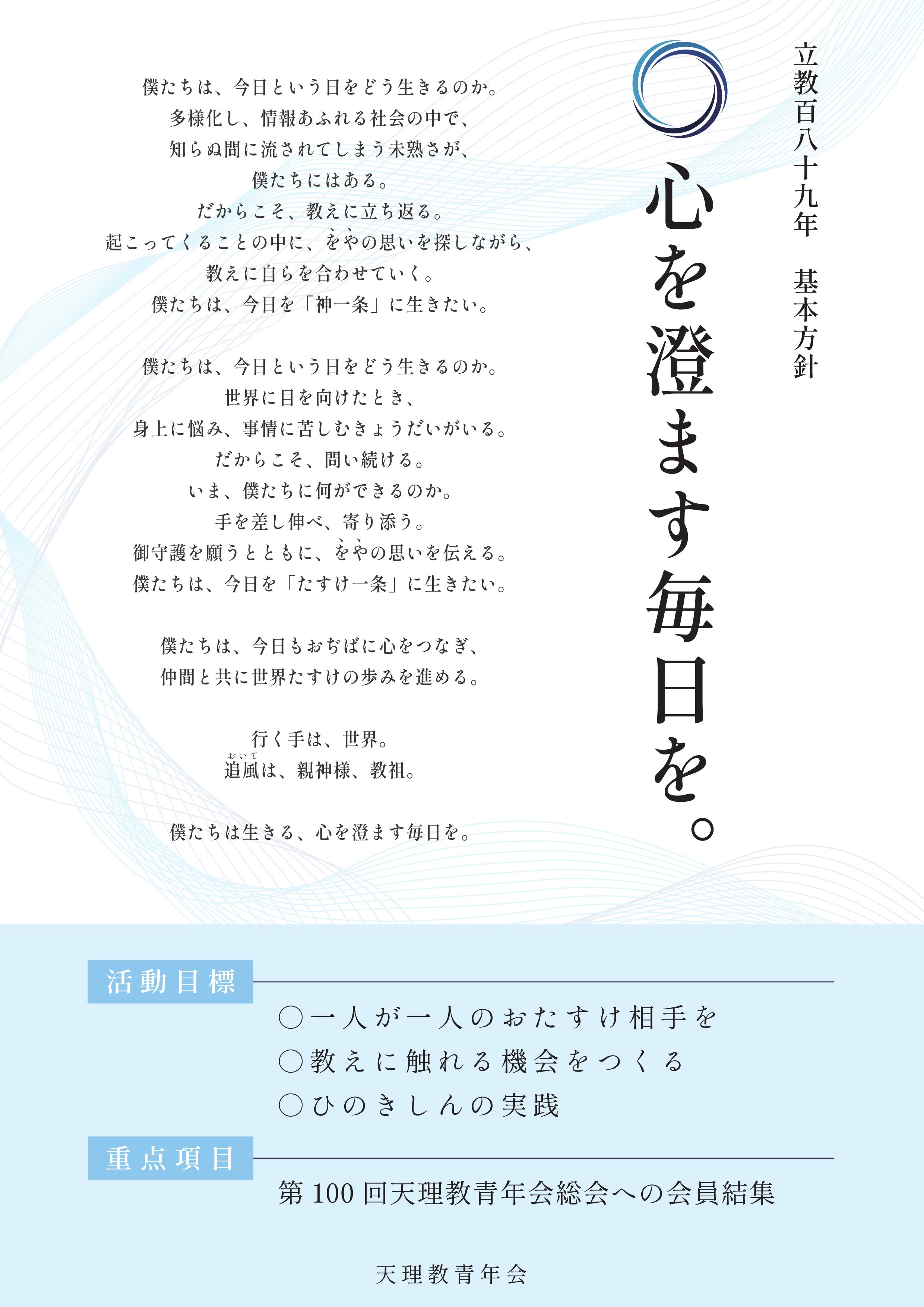 大教会長様は、今年1年、目的を持ってしっかりとおぢばに運ぶ事を促されておられます。この旬に、まずは学生会からおぢばを賑やかにしたいと思います。